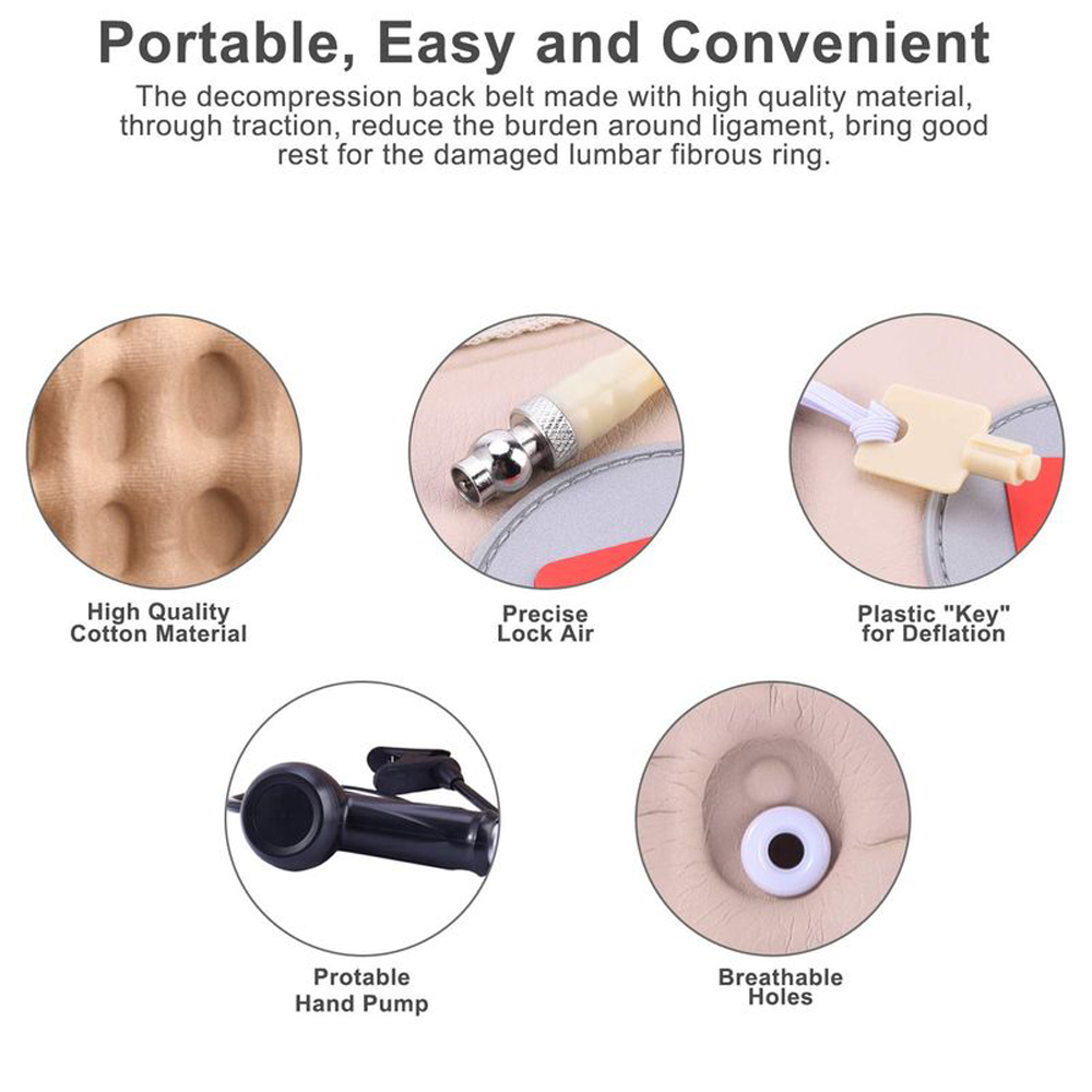 Đai kéo giãn cột sống Lumbar CR-801 giúp cho người bệnh có thể tự điều trị đau lưng tại nhà. Khi sử dụng chiếc đai được bơm lên với chiều cao khoảng 20 cm sẽ giúp mở rộng khoảng cách giữa các đốt sống lưng dẫn đến giảm sự chèn ép các dây thần kinh giúp bệnh nhân giảm đau nhanh chóng và có tác dụng lâu dài đặc biệt trong điều trị thoát vị đĩa đệm.