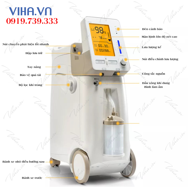 Máy có dung tích 5 lít và có khả năng cung cấp từ 1 – 5 lít khí thở mỗi phút cho bạn. Đồng thời, sản phẩm có thể hoạt động ổn định 24/7 và luôn giữ được độ tinh khiết trên 93%.