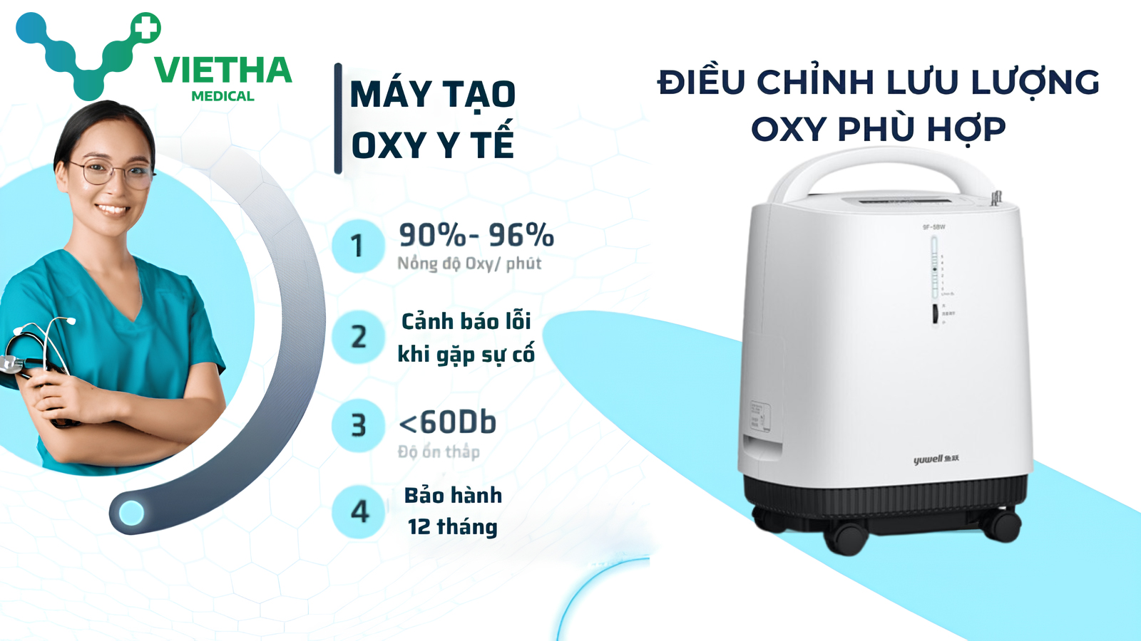Máy tạo oxy chuẩn y tế không chỉ giúp tạo ra khí oxy tinh khiết cao (trên 90%) mà còn hoạt động ổn định, an toàn và tiết kiệm điện.