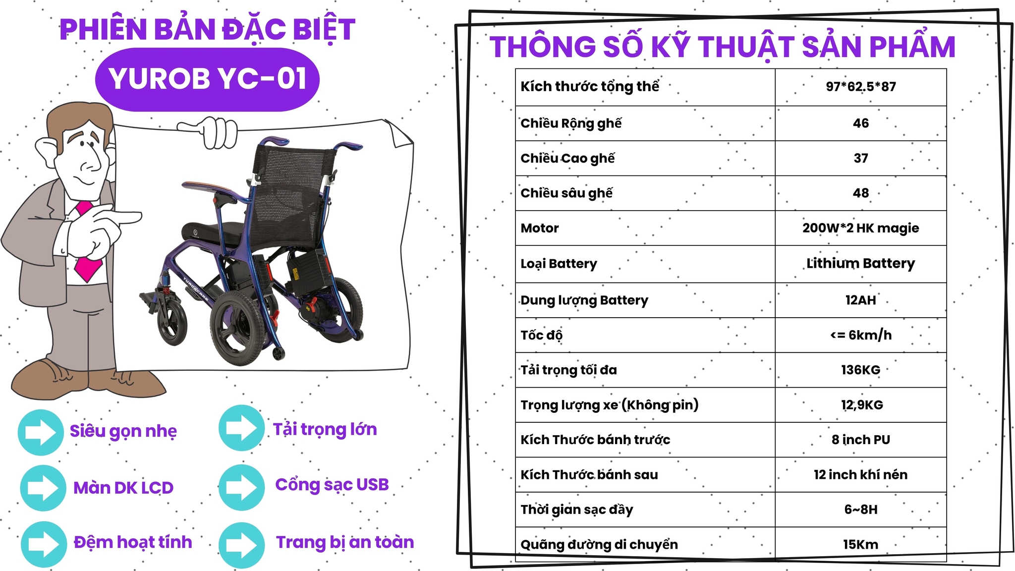 Xe lăn điện OROMI XLD-19S – Gấp gọn, nhẹ, tiện lợi cho người già & người khuyết tật